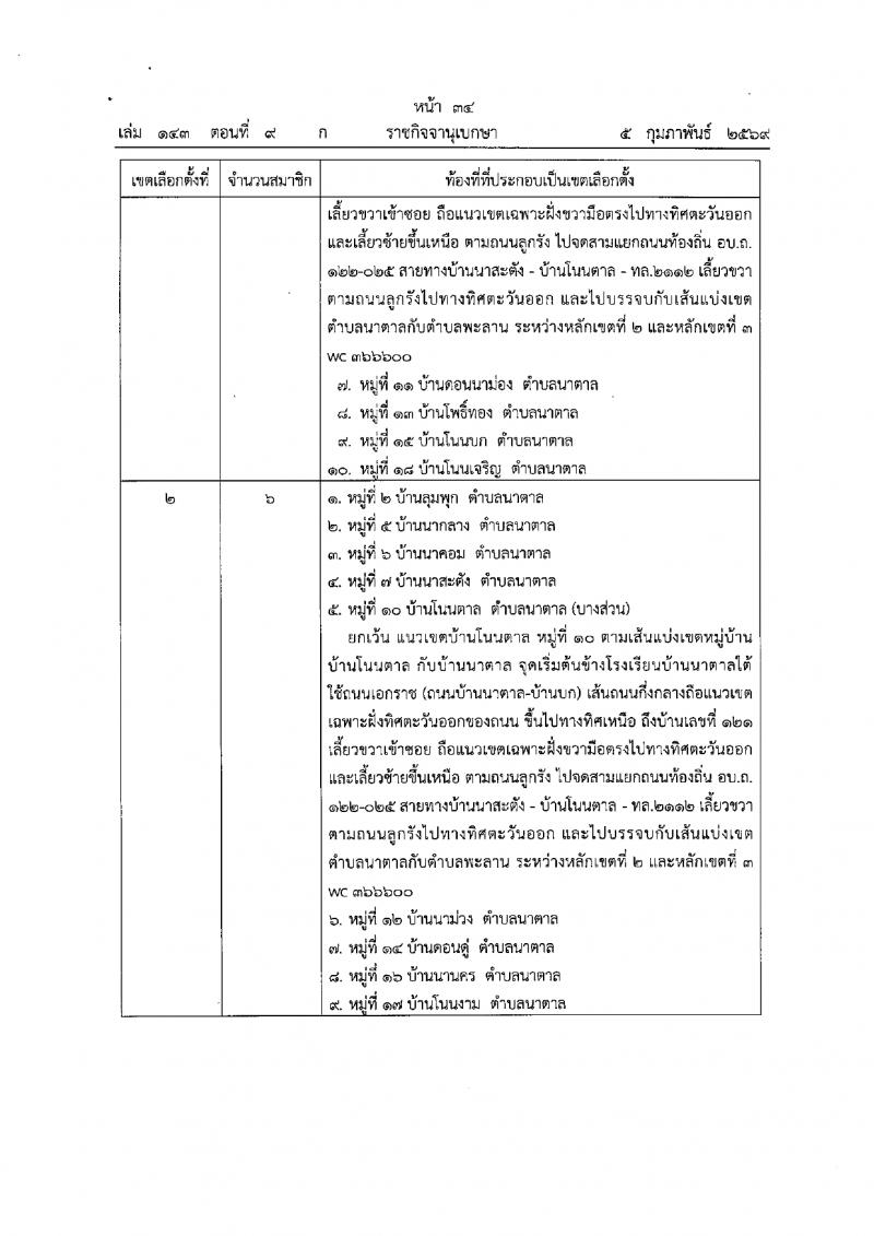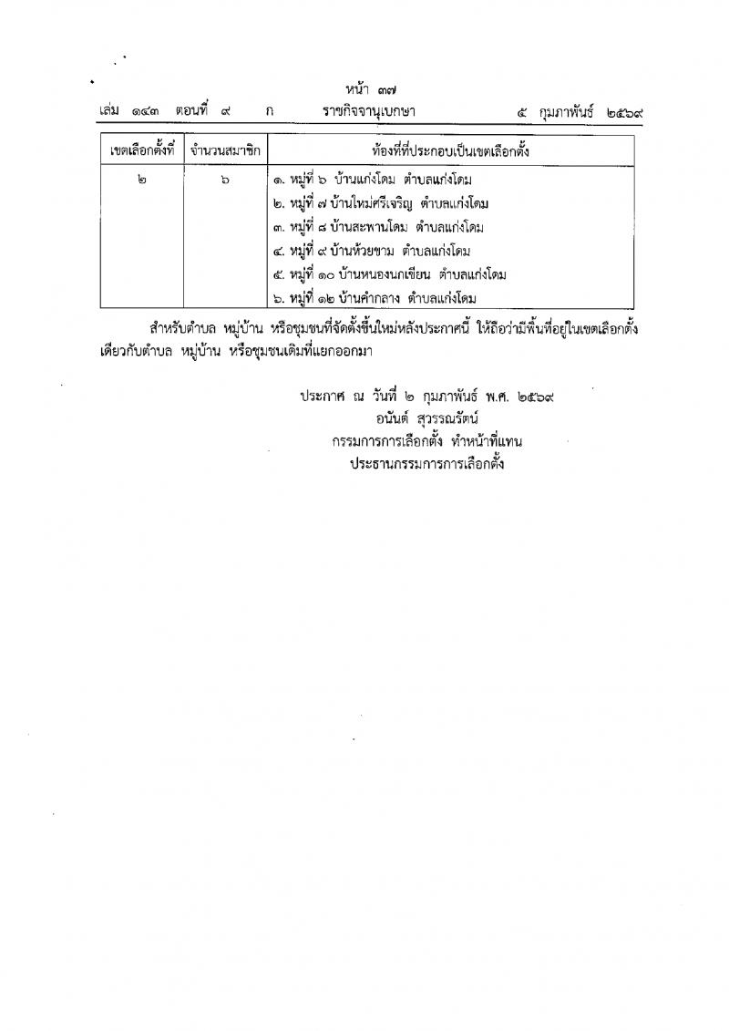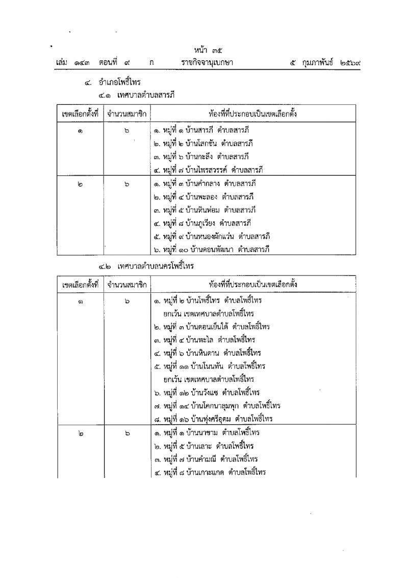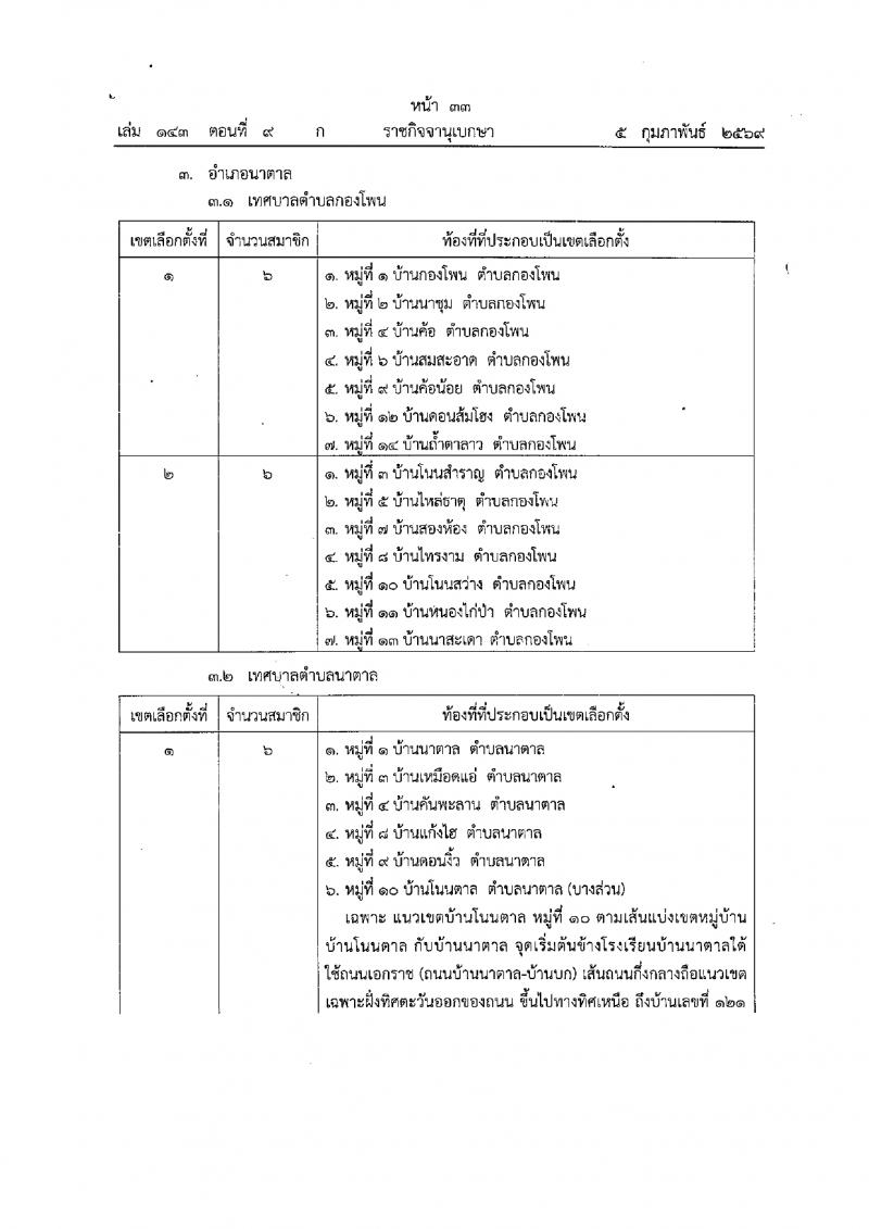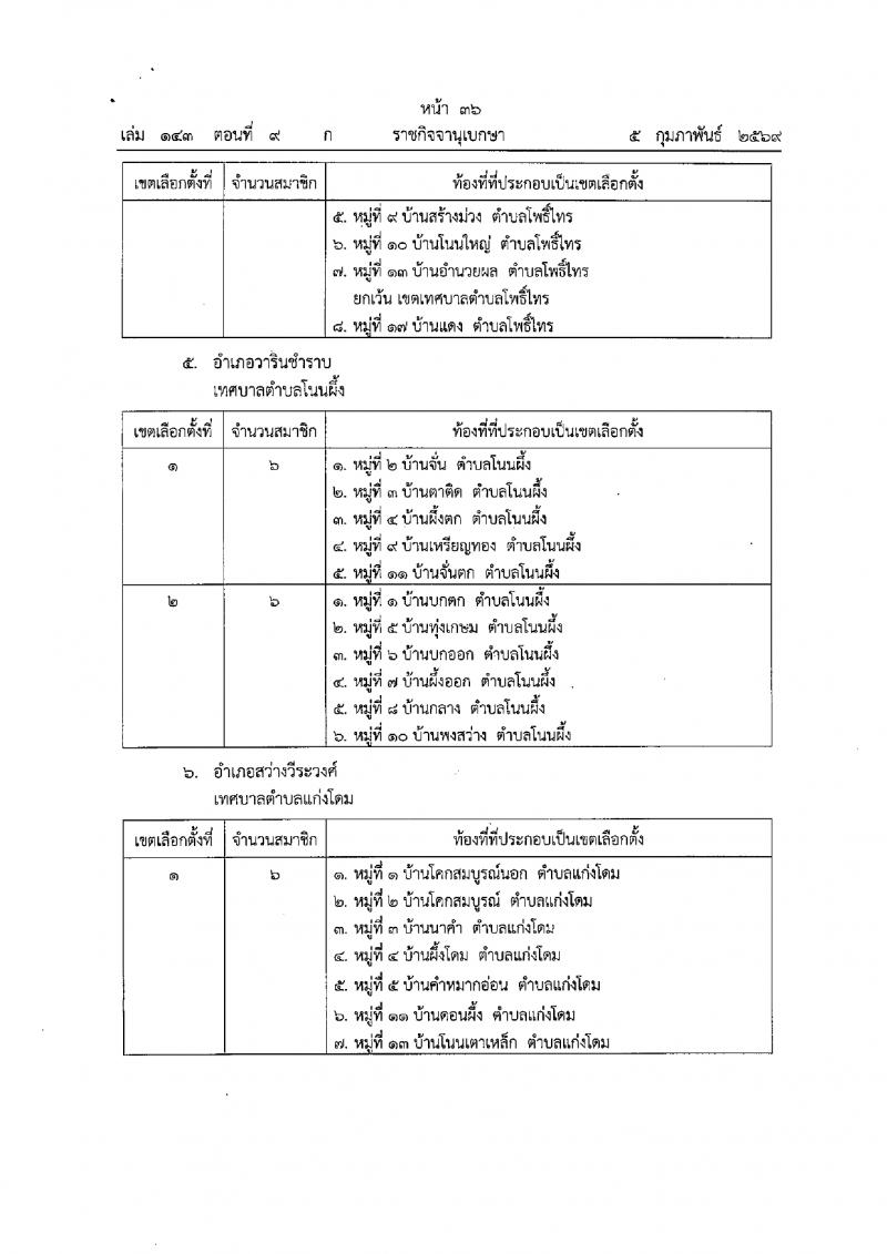 ประกาศคฯะกรรมการการเลือกตั้ง เรื่อง การแบ่งเขตเลือกตั้งสมาชิกเทศบาลในจังหวัดอุบลราชธานี