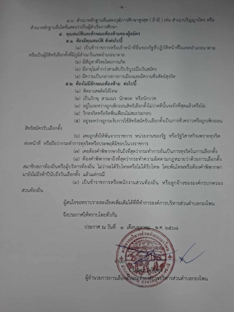 ประกาศผู้อำนวยการการเลือกตั้งประจำองค์การบริหารส่วนตำบลกองโพน เรื่อง การรับสมัครบุคคลเข้ารับการสรรหาเป็นคณะกรรมการการเลือกตั้ง ประจำองค์การบริหารส่วนตำบลกองโพน