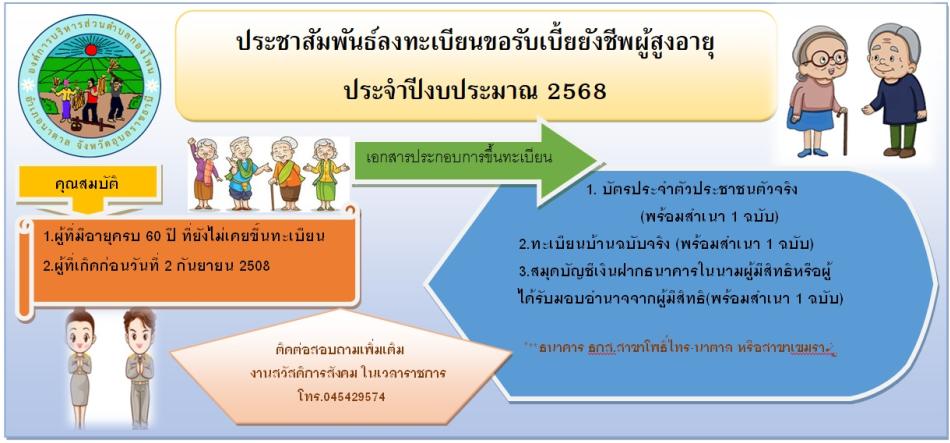 ประชาสัมพันธ์รับขึ้นทะเบียนผู้สูงอายุ ประจำปีงบประมาณ2568 [2 พฤศจิกายน 2566]