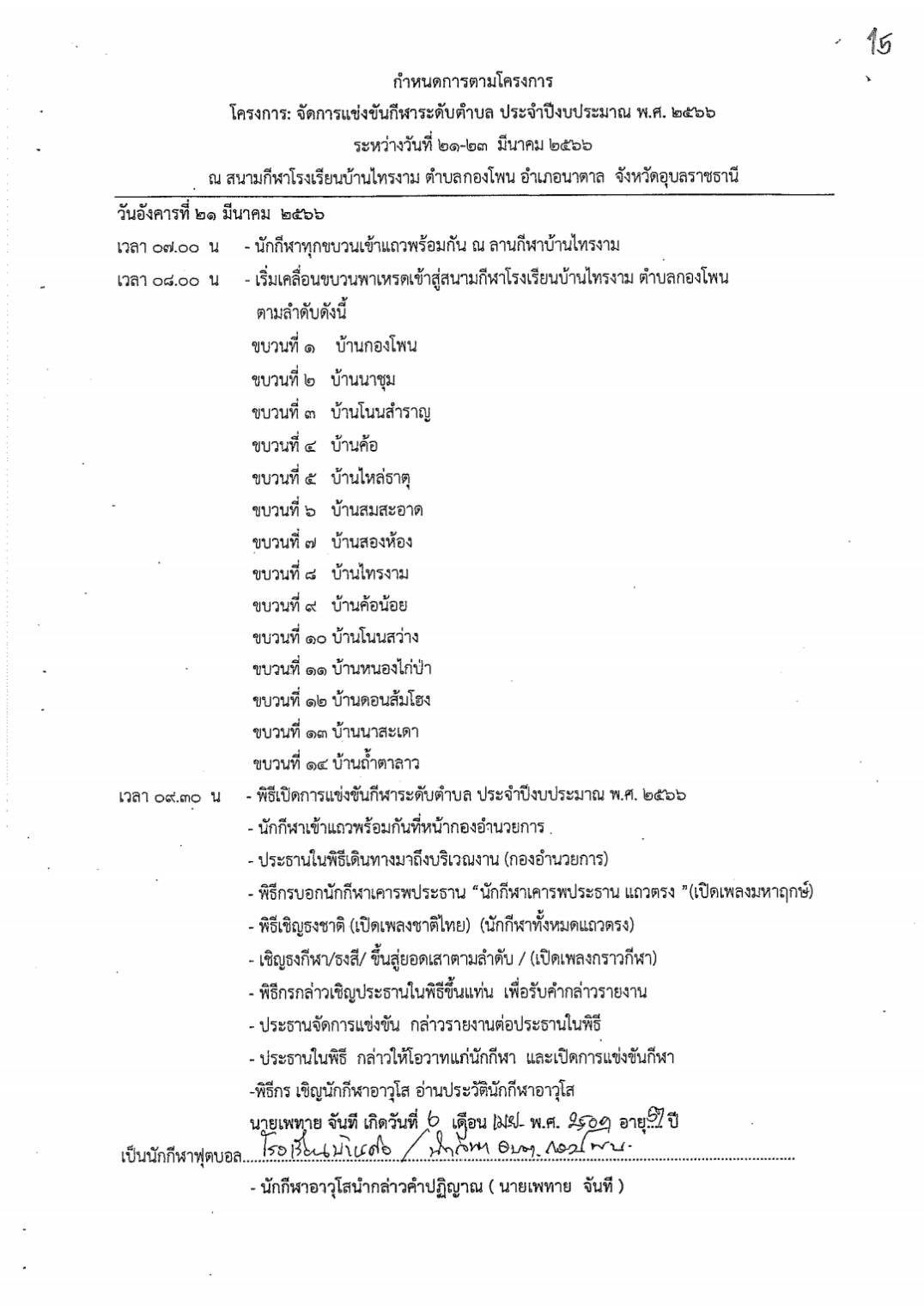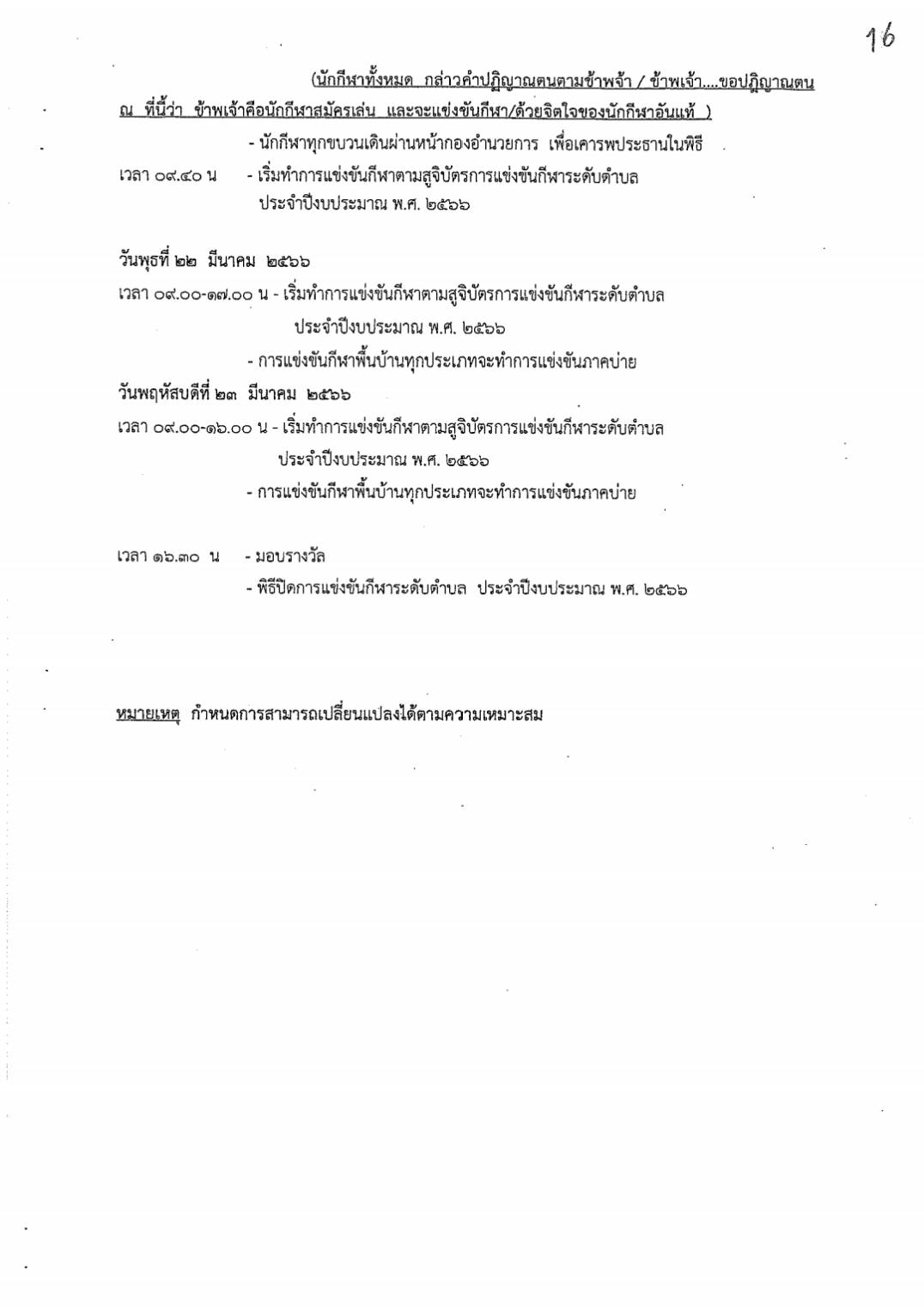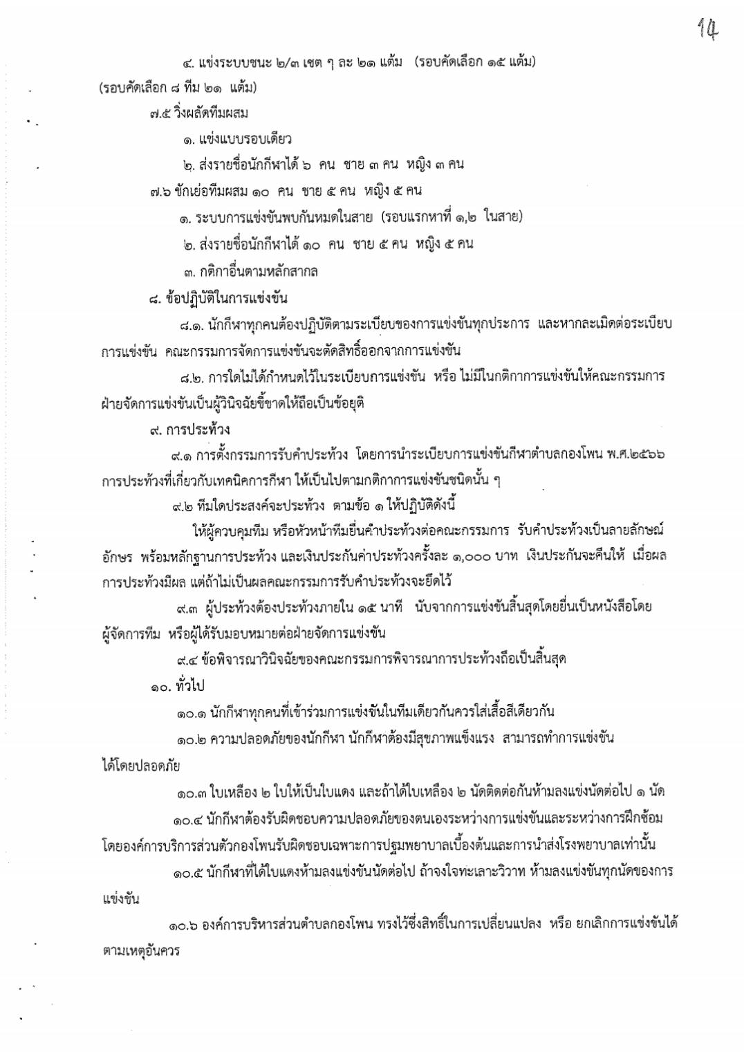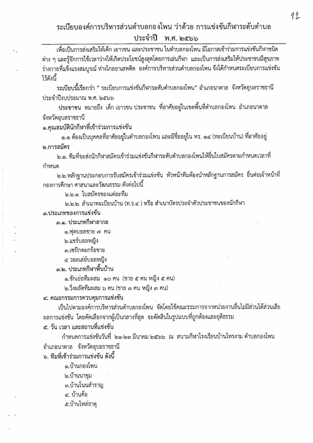 สูจิบัตรการแข่งขันกีฬาระดับตำบล ประจำปีงบประมาณ 2566 องค์การบริหารส่วนตำบลกองโพน