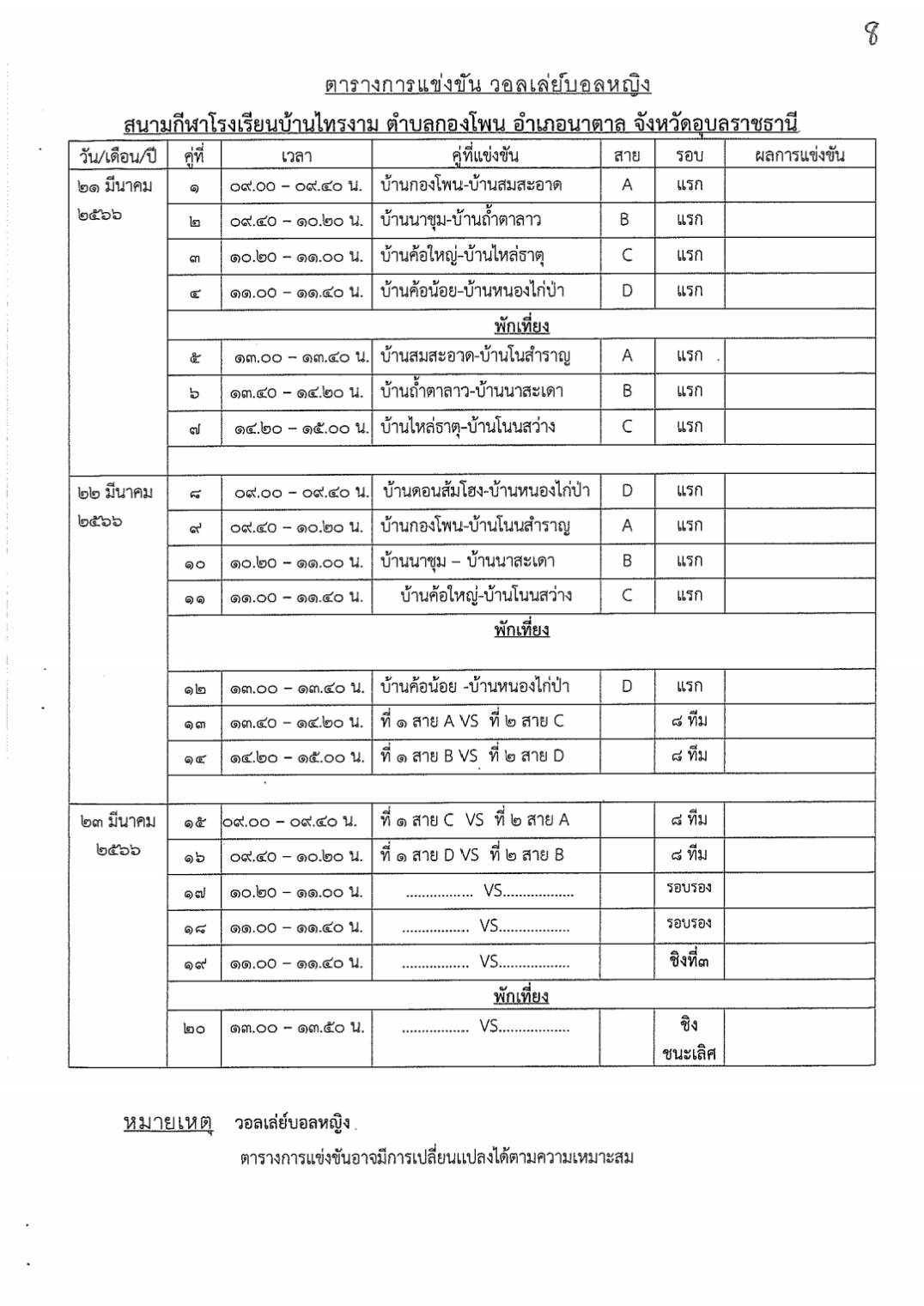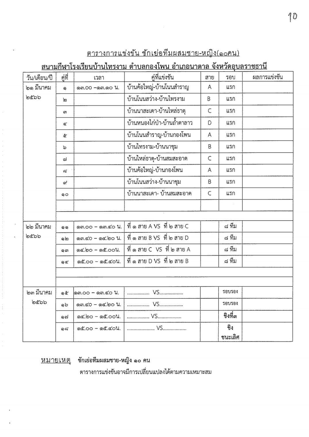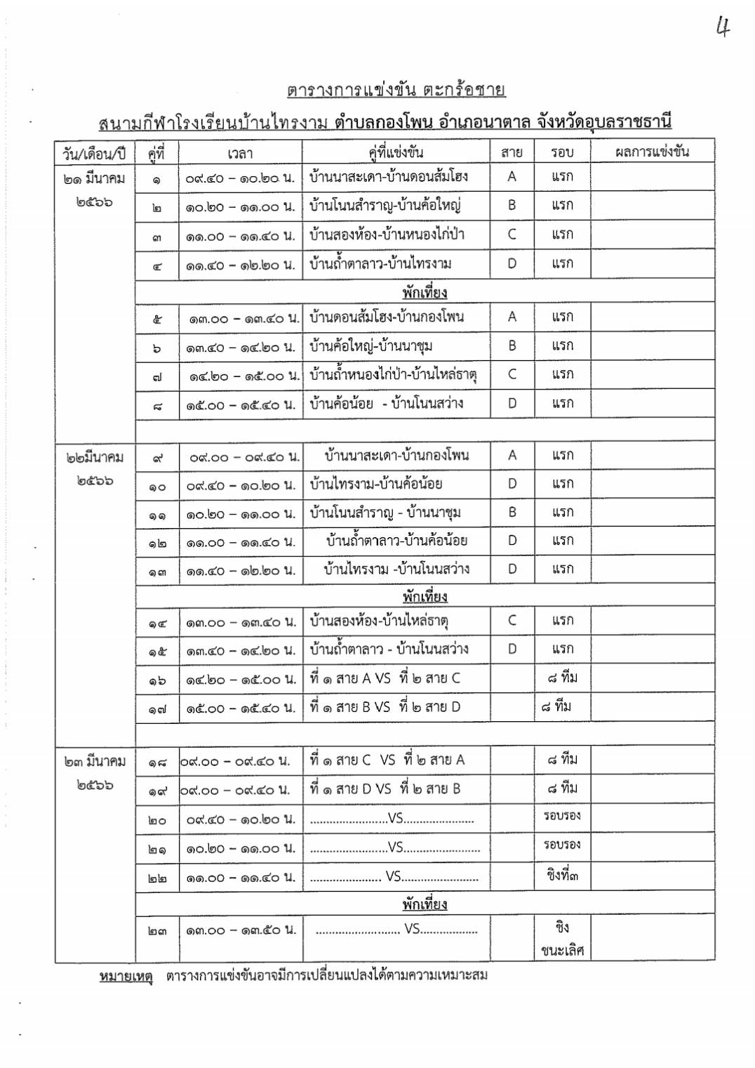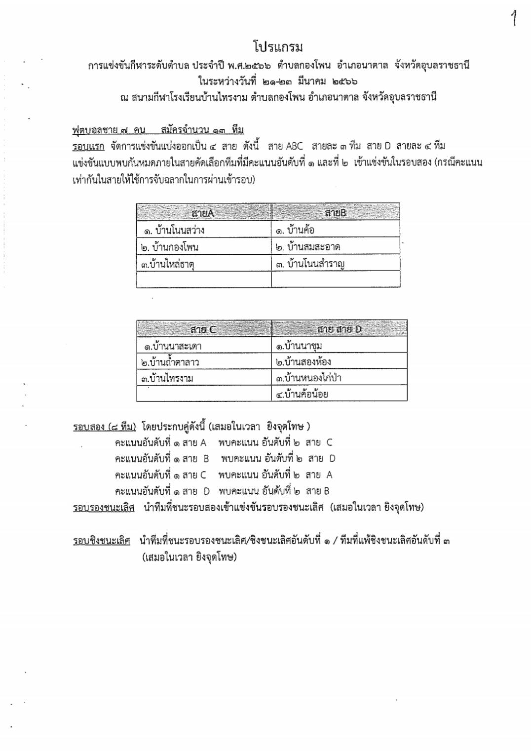 สูจิบัตรการแข่งขันกีฬาระดับตำบล ประจำปีงบประมาณ 2566 องค์การบริหารส่วนตำบลกองโพน