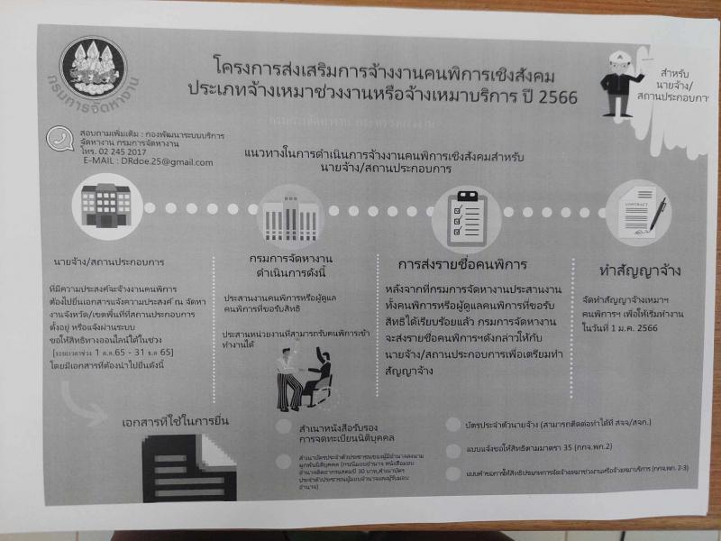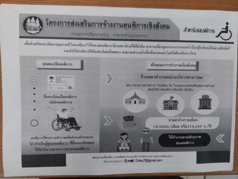 ประชาสัมพันธ์การส่งเสริมการจ้างงานคนพิการ ประเภทจ้างเหมาบริการ/จ้างเหมาช่วยงาน