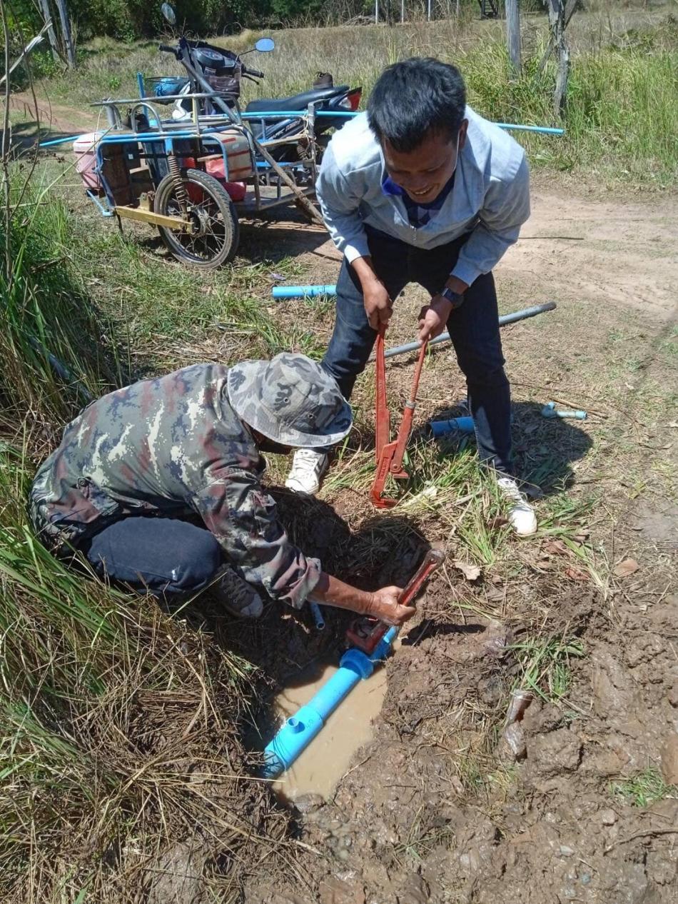 นายกองค์การบริหารส่วนตำบลกองโพน มอบหมายให้กองช่างโดยงานประปาลงพื้นที่ติดต้ังมิเตอร์ประปาน้ำ บ้านหนองไก่ป่า หมู่ 11 [31 มกราคม 2565]
