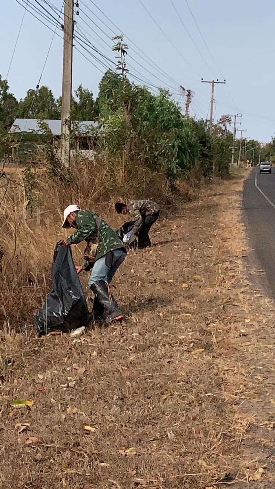 วันที่ 23 กุมภาพันธ์ 2565 เจ้าหน้าที่ลงพื้นที่เก็บขยะมูลฝอย ตามไหล่ทาง โครงการชุมชนน่าอยู่ฟื้นฟูเศรษฐกิจพอเพียง [23 กุมภาพันธ์ 2565]