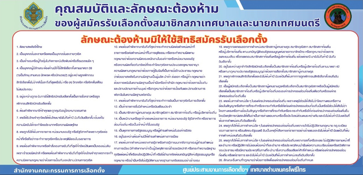 คุณสมบัติต้องห้ามผู้สมัครสมาชิกสภาเทศบาลตำบลกองโพนและนายกเทศมนตรีตำบลกองโพน